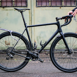 The MUDDER Mini will fit all gravel/cx forks with clearance for tire widths between 32 mm up to 55 mm. It will not work on a road fork with narrow clearance or for fat bikes. The correct position is about 10 mm above the tire. Aligning the position to the tire and not the fork crown increases efficiency and is made possible by our custom hook and loop straps. Make sure that the mudguard doesn't touch your down tube when turning the handlebar.