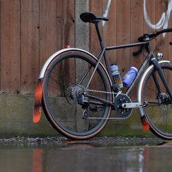 A dashing collaboration to celebrate the 10-year anniversary of the independent cycling label Rvmble from Dresden, a long personal favorite of the Ass Savers team. The BroTector Rvmble Prong does not only keep feet dry it, it also sports a reflective print to keep you safer on those dark winter rides.
