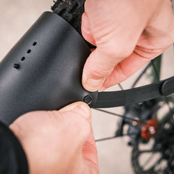 The straps are made from ultra-tough TPU and should be pulled as tight as you can comfortably do by hand. If you experience that the mudguard is not stable, try to use the next hole in the strap.